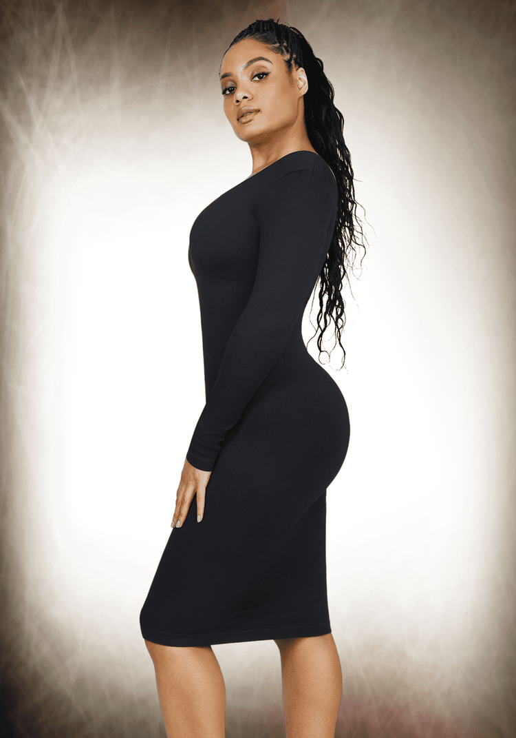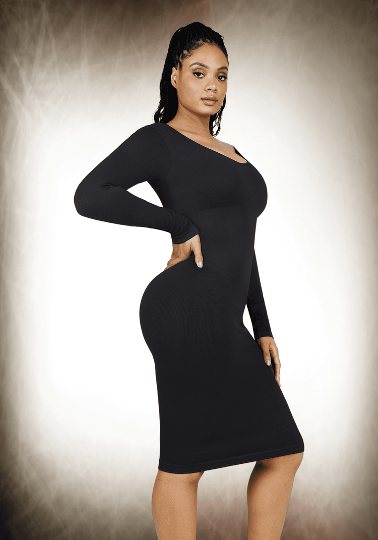 Indulge in feminine and alluring women's dresses in various styles, such as square-neck skirts, U-open-back Control Body, and long-sleeved dresses. These dresses hug your waist, creating an hourglass silhouette that adds a touch of romance to your daily life. Perfect for everyday wear, travel, or any occasion, these dresses offer style and comfort, providing tummy support and a confidence-boosting fit. Embrace the vibe with this shapewear dress designed for effortless style.